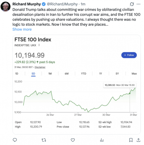 - The callous indifference of stock marketson 31 March 2026 by Richard Murphy